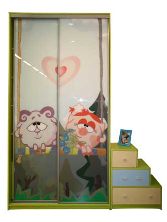 Шкаф-купе детский с комодом, рисунок «Смешарики»