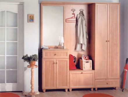 Прихожая изготовлена из ДСП, фасадная часть: Рамка МДФ в цвет прихожей, вставка ДСП. В рамку можно вставить: стекло, ротанг,зеркало. Стоимость будет зависеть от наполнения фасадной части.