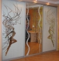 Шкафы любой сложности. Возможны любые цветовые решения ЛДСП. Разнообразный дизайн фасадов с применением рисунков и фотографий (а также собственное фото). Работаем с ведущими поставщиками материалов и комплектующих. Используем системы RaumPlus, Komandor, Aristo.